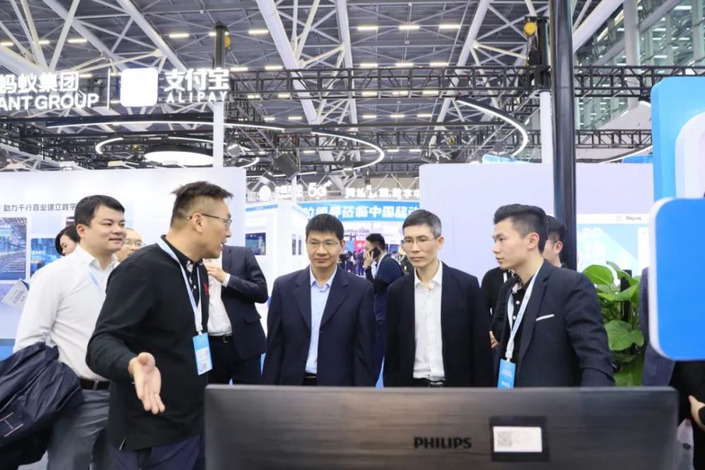 710公海智能展位吸引了诸多领导和嘉宾,其中,广东省揭阳市委副书记、市政府党组书记、市长支光南,安徽省数据资源管理局党组书记、局长朱诚,广东省政府接待办公室秘书处处长胡圣满,番禺区政府杨少华副区长,黄埔区政数局局长王薇等相关领导莅临710公海智能展位指导交流,710公海智能董事长孙超对各领导的莅临指导表示热烈欢迎,并热情介绍了公司参展的创新应用成果。