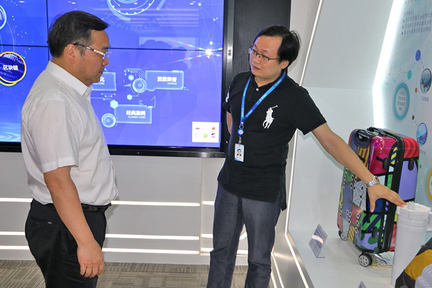 710公海智能总裁龙飞为陈小华区长介绍公司产品